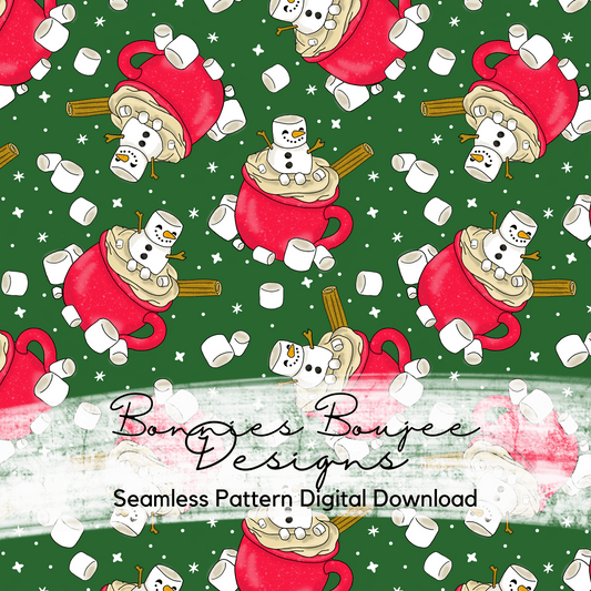 Snowman Hot Cocoa in a Red Mug Hand Drawn Seamless File