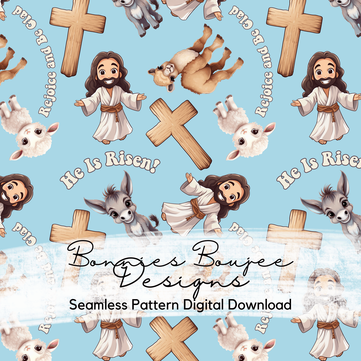 Jesus He is Risen Easter on a Blue Background Seamless File