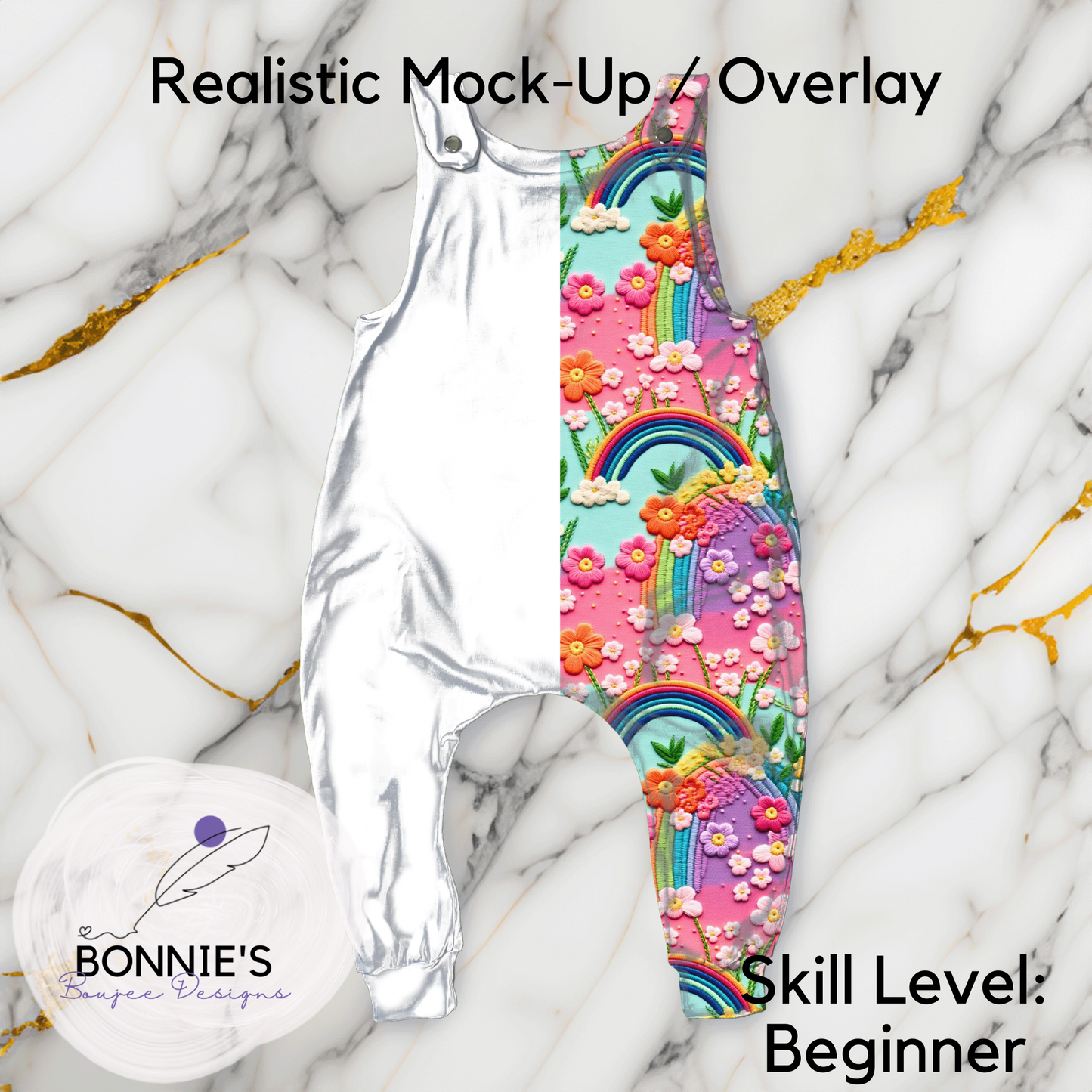 Mock-Up Riverside Overall Romper from LLK on Marble Background