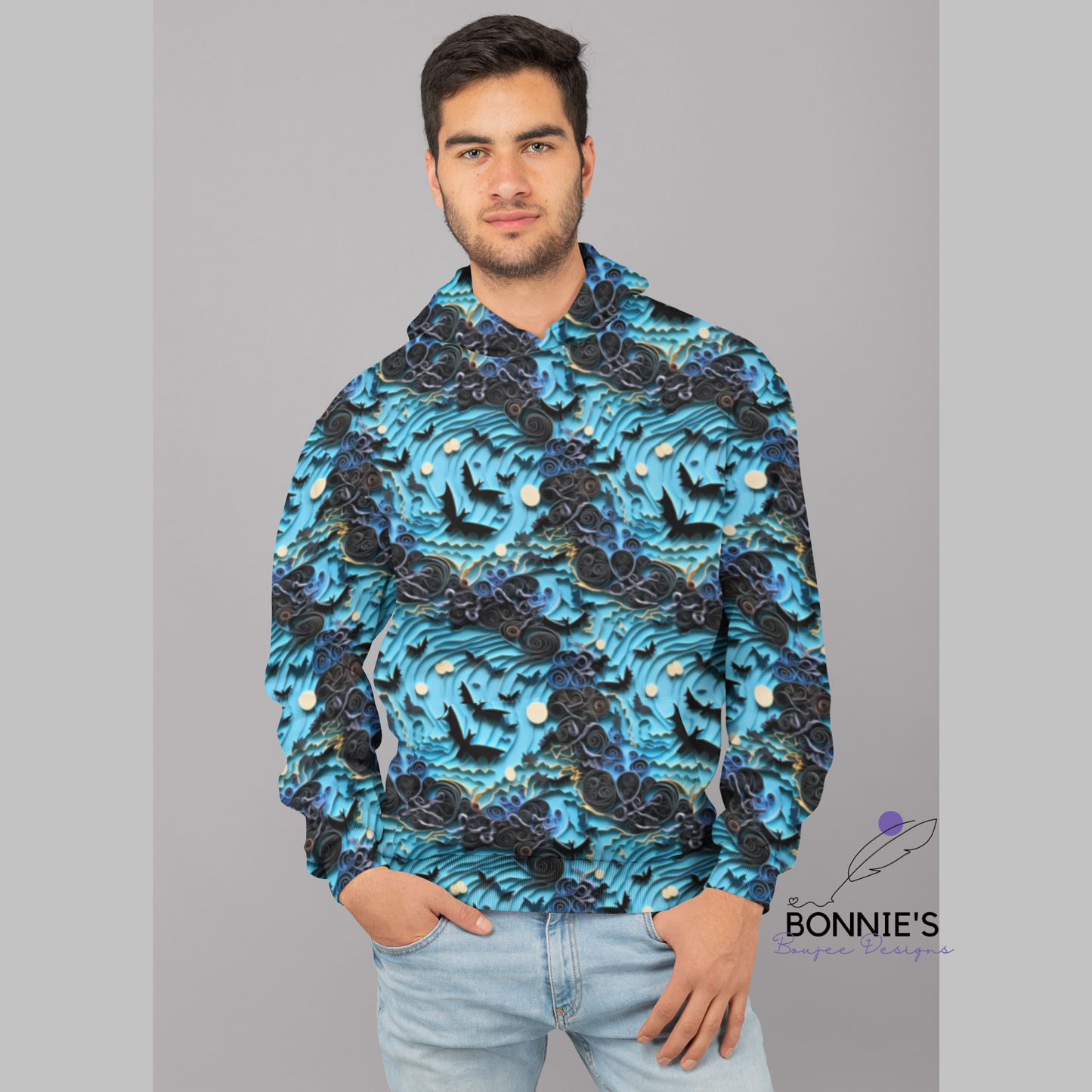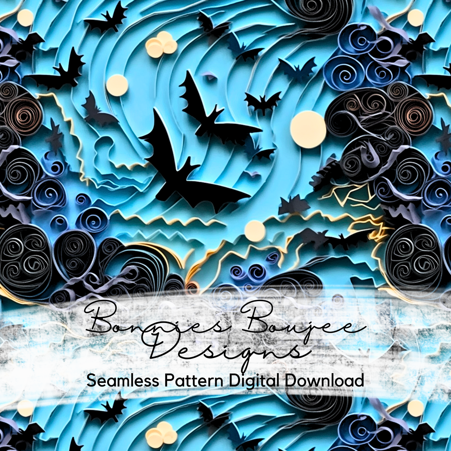 Paper Quilling Bats in a Blue Sky Seamless Design
