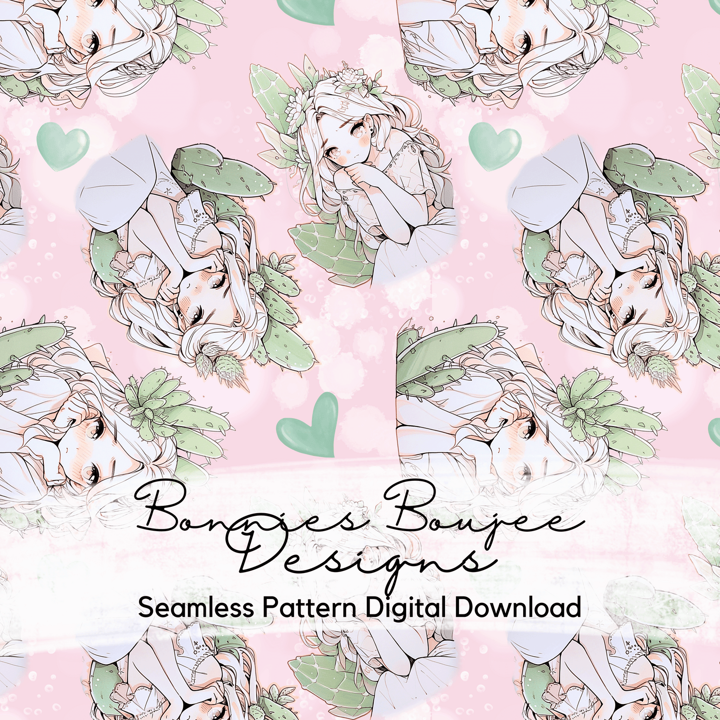 Step into a whimsical desert wonderland with our delightful instant download, featuring beautiful anime fairies living among adorable cacti on a soft and dreamy pastel pink background! This seamless digital file offers a seamless repeating pattern, ready to add a touch of enchantment and pastel perfection to your creations in an instant.