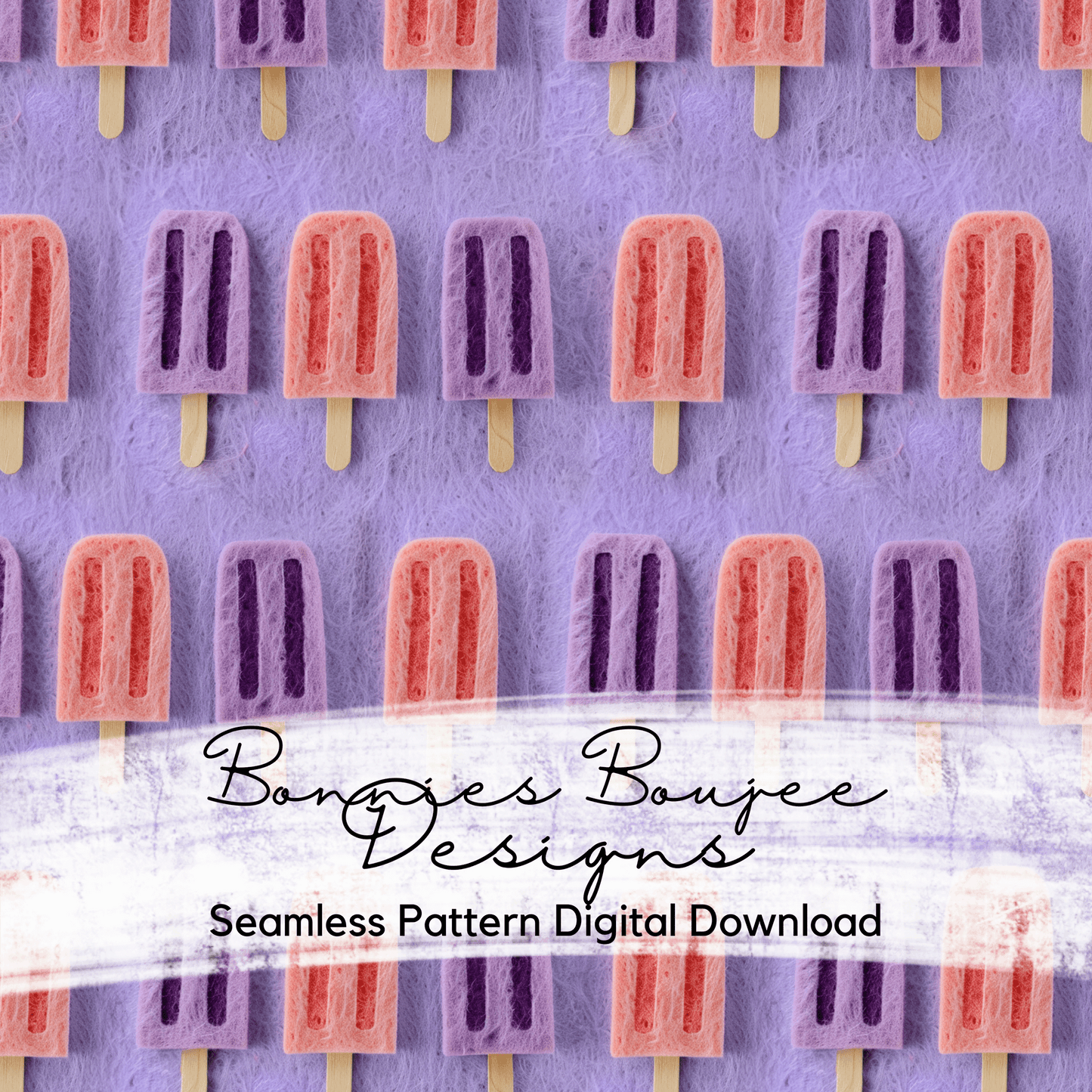 Felt Summer Popsicles on a Purple Background Seamless File