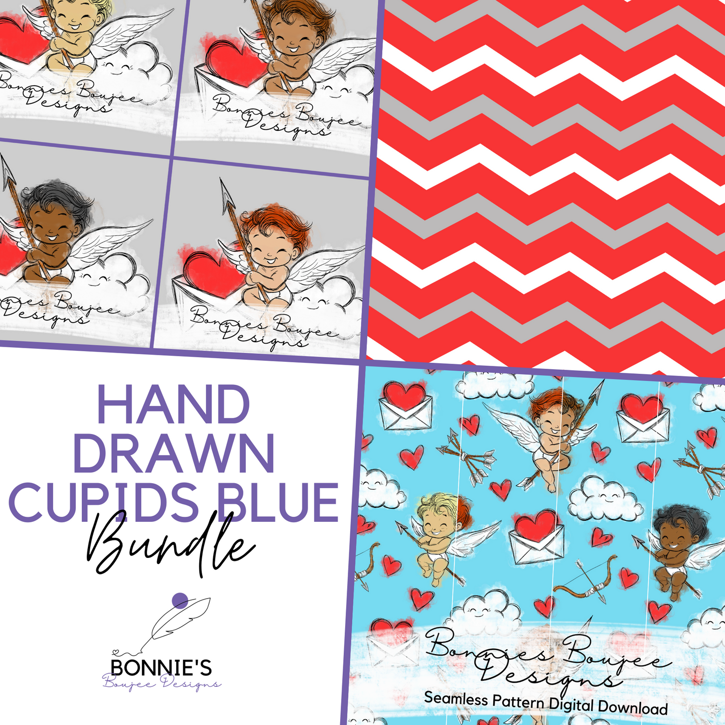 Hand Drawn Cupids on Blue Colorway Bundle Purchase