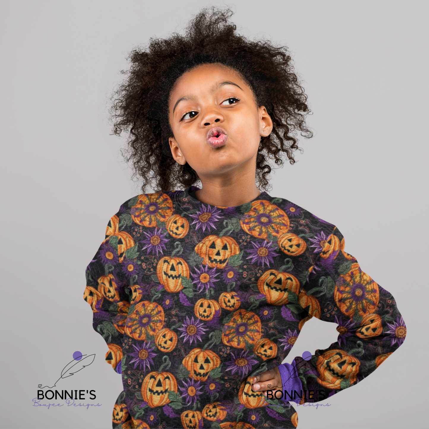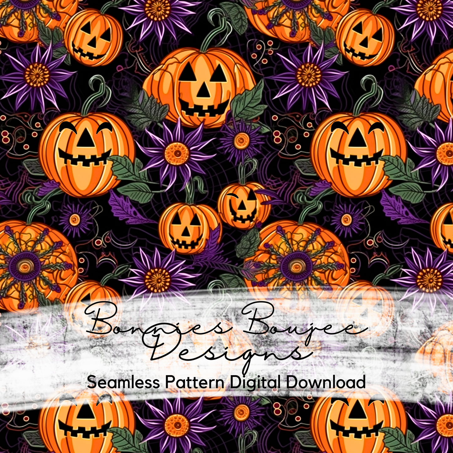 Jack-O-Lantern Pumpkins with Flowers and Fun Designs Seamless Design
