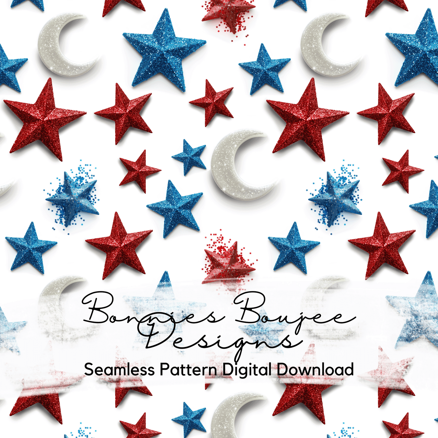 Textured Glitter Patriotic Moon and Stars Seamless File