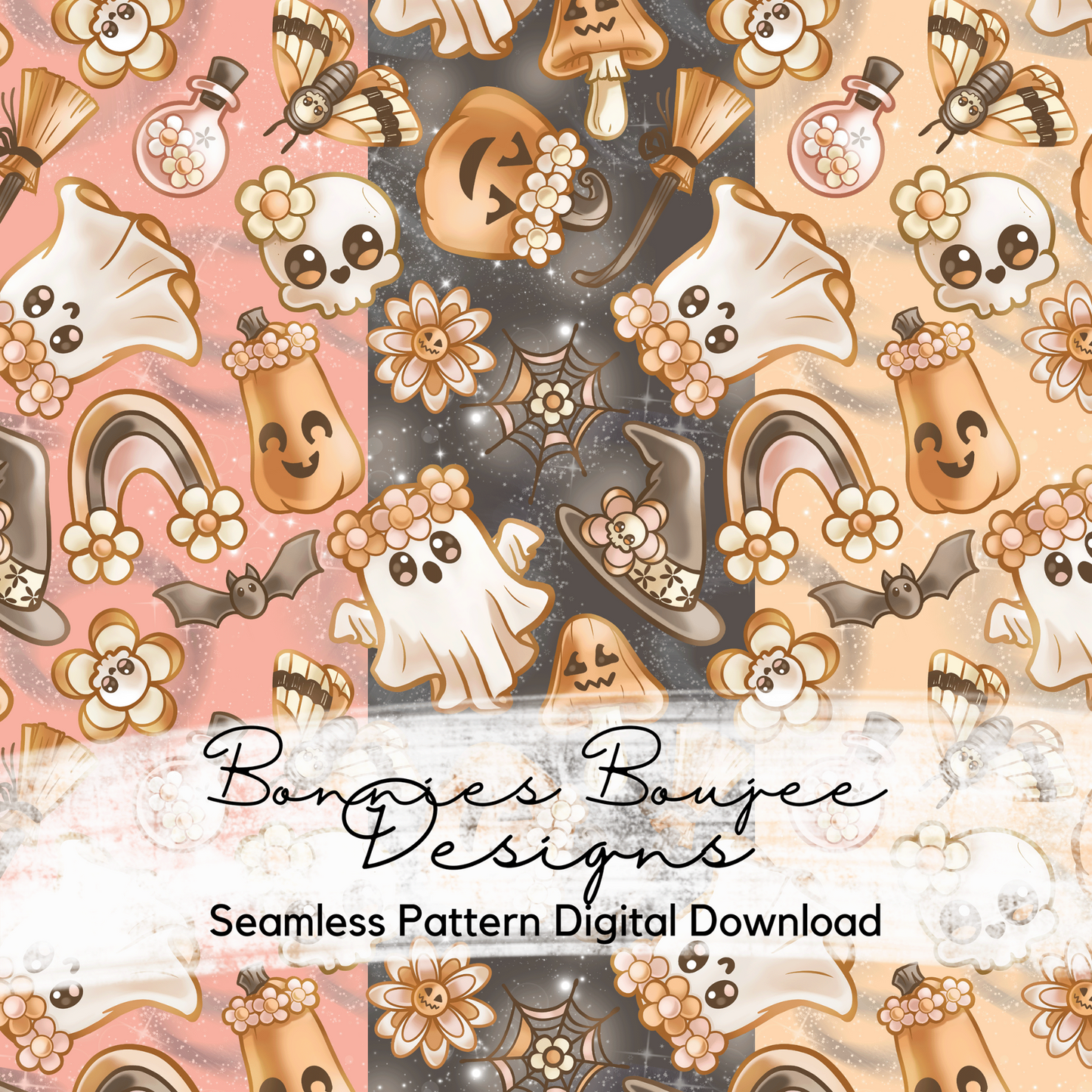 Boho Floral Cute Ghosts Seamless File in Three Colorways