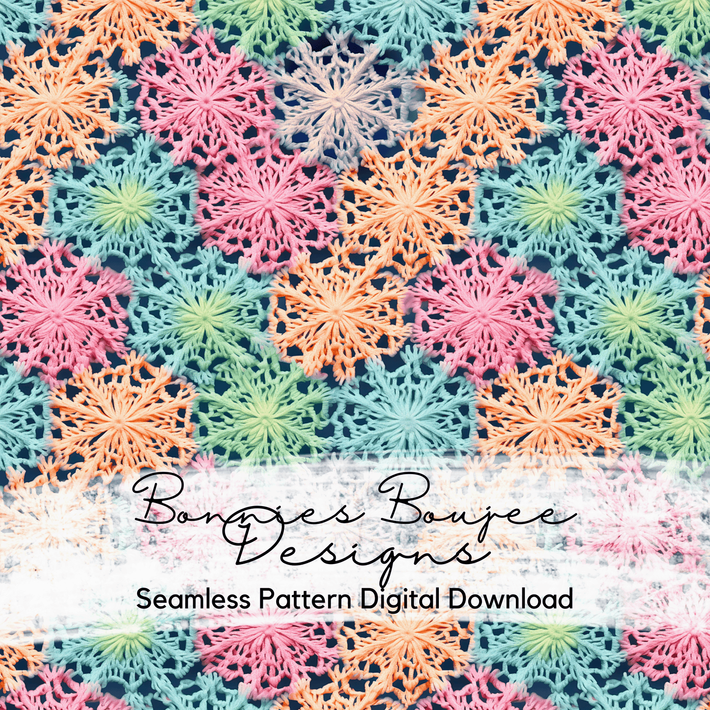 Wrap your creative projects in the cozy charm of winter with our Crochet of Multicolored Snowflakes Seamless File, ready for instant download! Immerse yourself in the intricate beauty of handcrafted snowflakes, lovingly crocheted in a rainbow of colors and seamlessly captured in every pixel. Whether you're crafting a digital winter wonderland or adding a touch of handmade warmth to your designs, this seamless file is your key to pixel-perfect perfection. Don't wait – let the artistry of crocheted snowflakes inspire your next cozy masterpiece today! ❄️🌈🎨