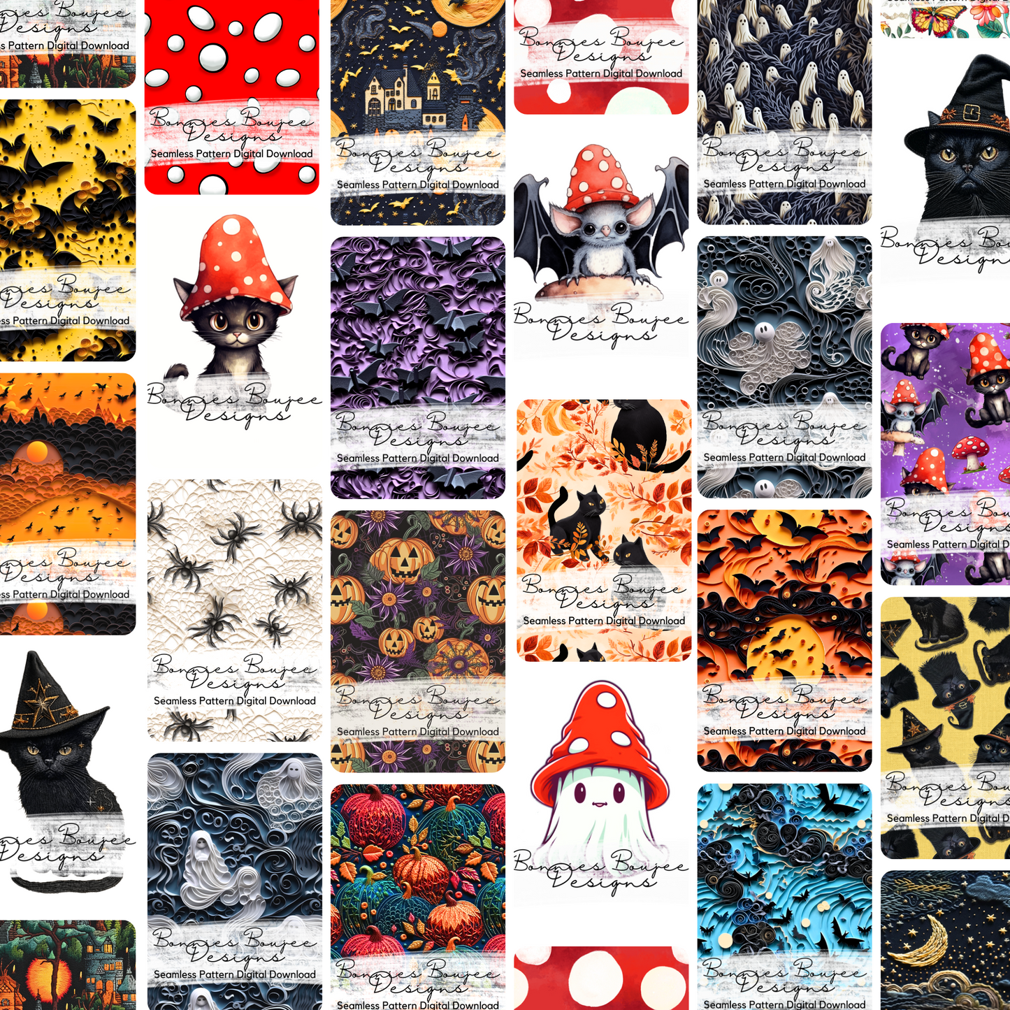 This bundle includes all the seamless files, PNGs and coordinates from the Halloween drop.