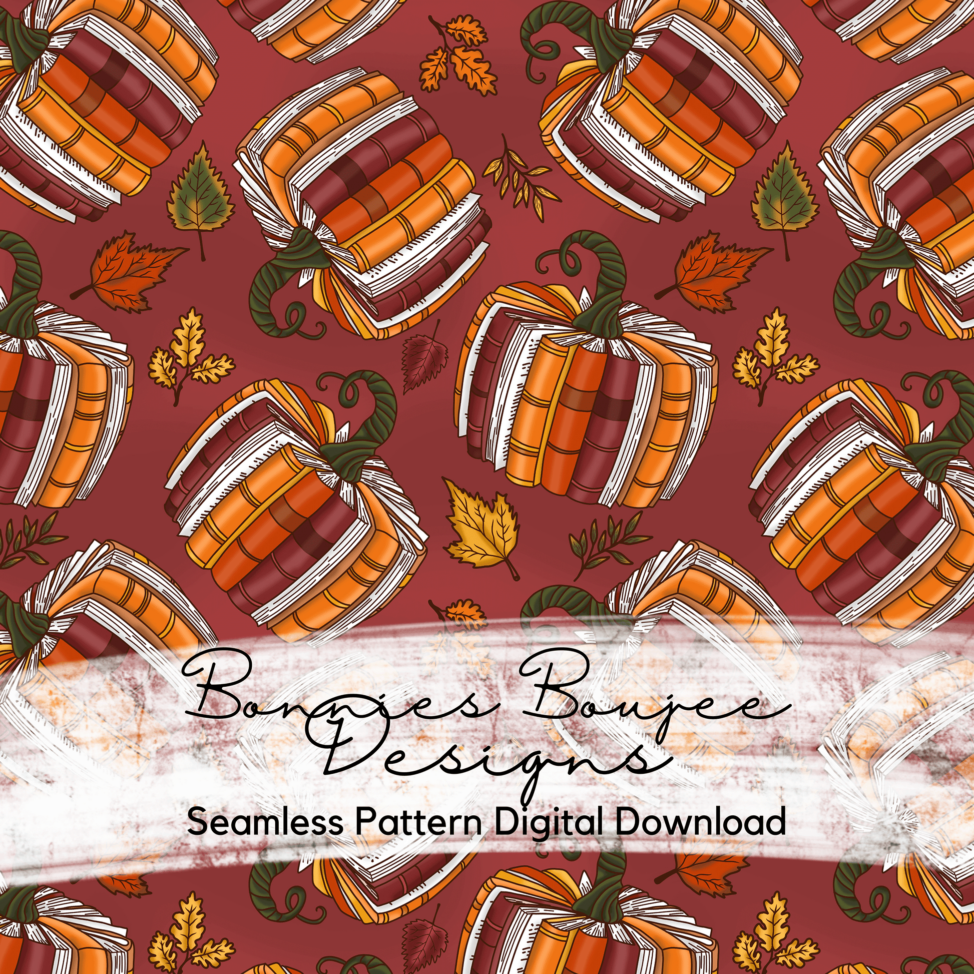 Hand Drawn Book Pumpkin for Fall Seamless File - Three Colorways