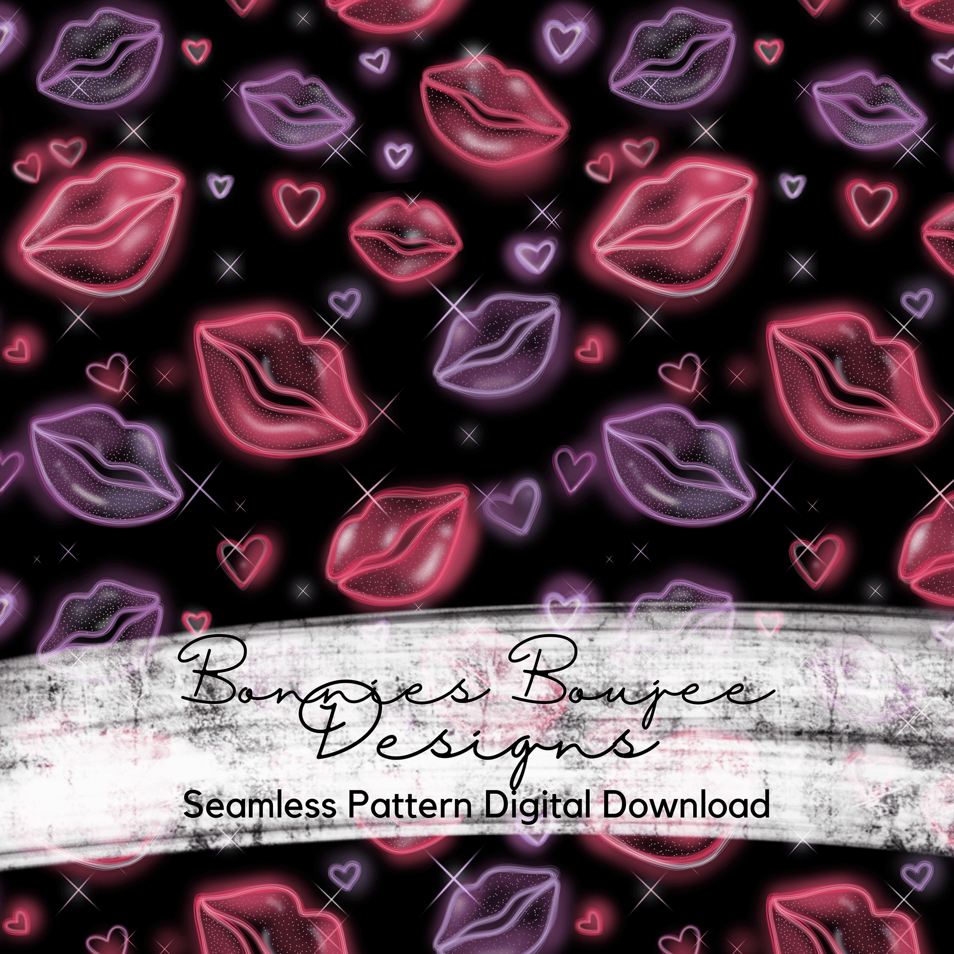 Hand Drawn Neon Kisses and Hearts Seamless File