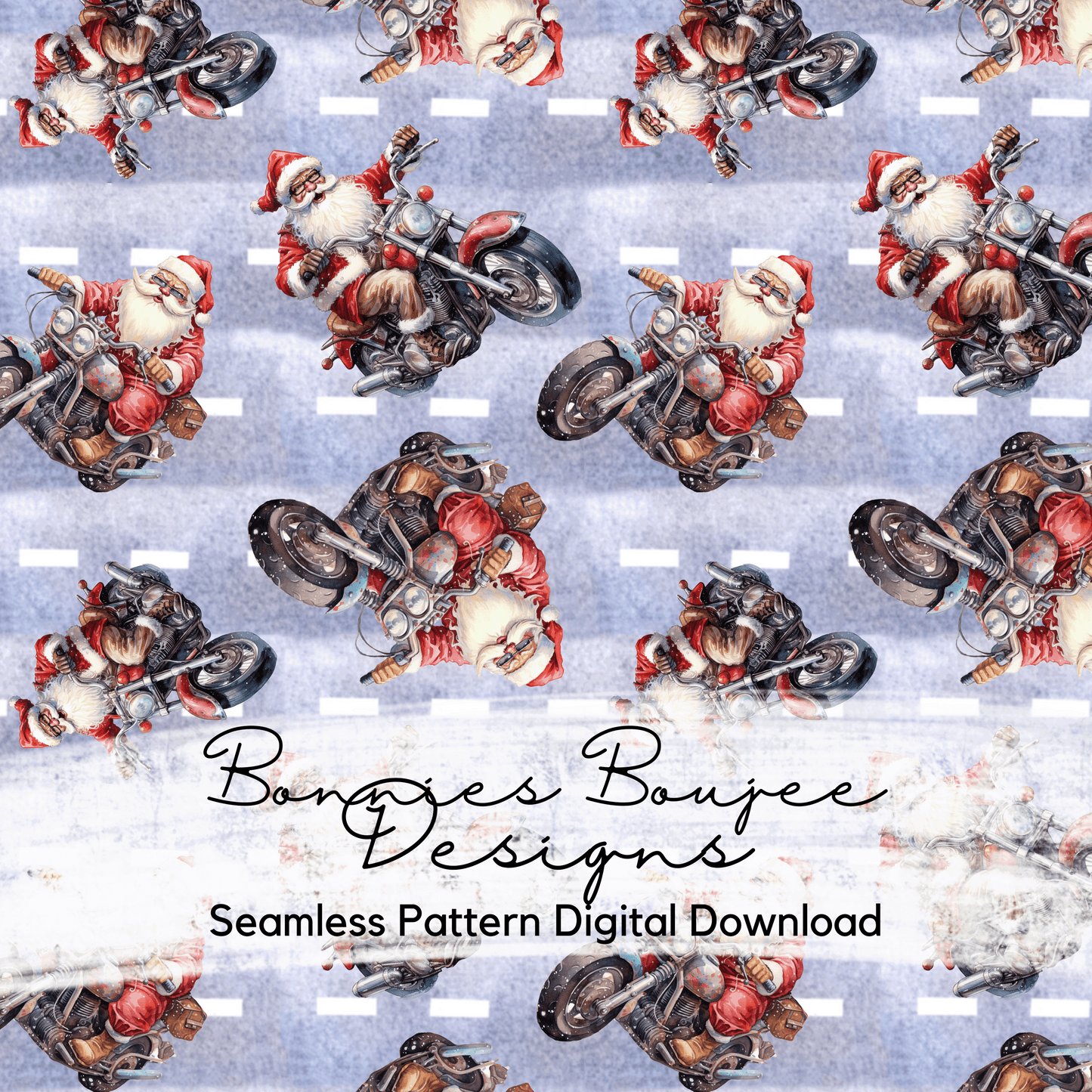 In the world of digital downloads, where everything feels a bit sameness, our Santa on a Motorcycle seamless design stands out like a perfect red-nosed reindeer. It embodies all the creativity, authenticity, and sheer joy Etsy stands for. So, go ahead, add a kick to your festive season because darling, sometimes traditions are meant to be given a spin, in this case, quite literally.