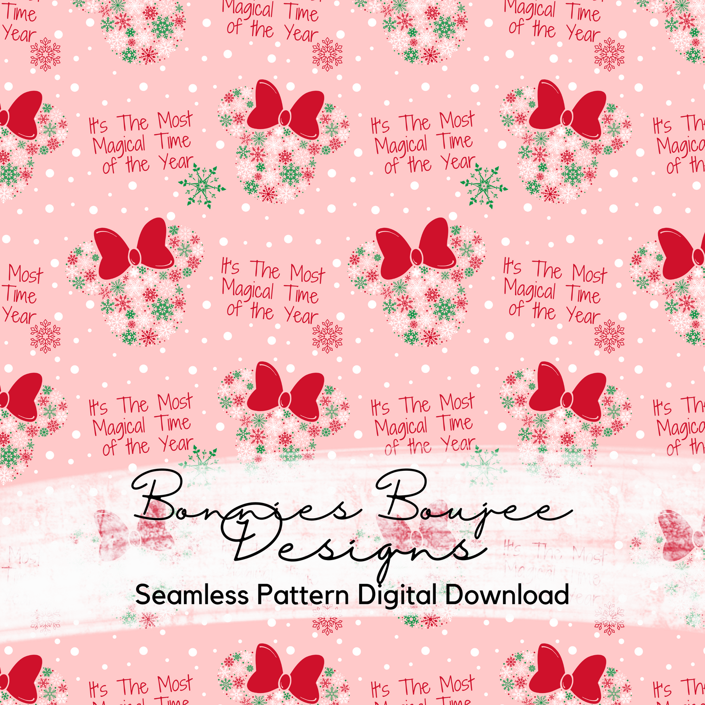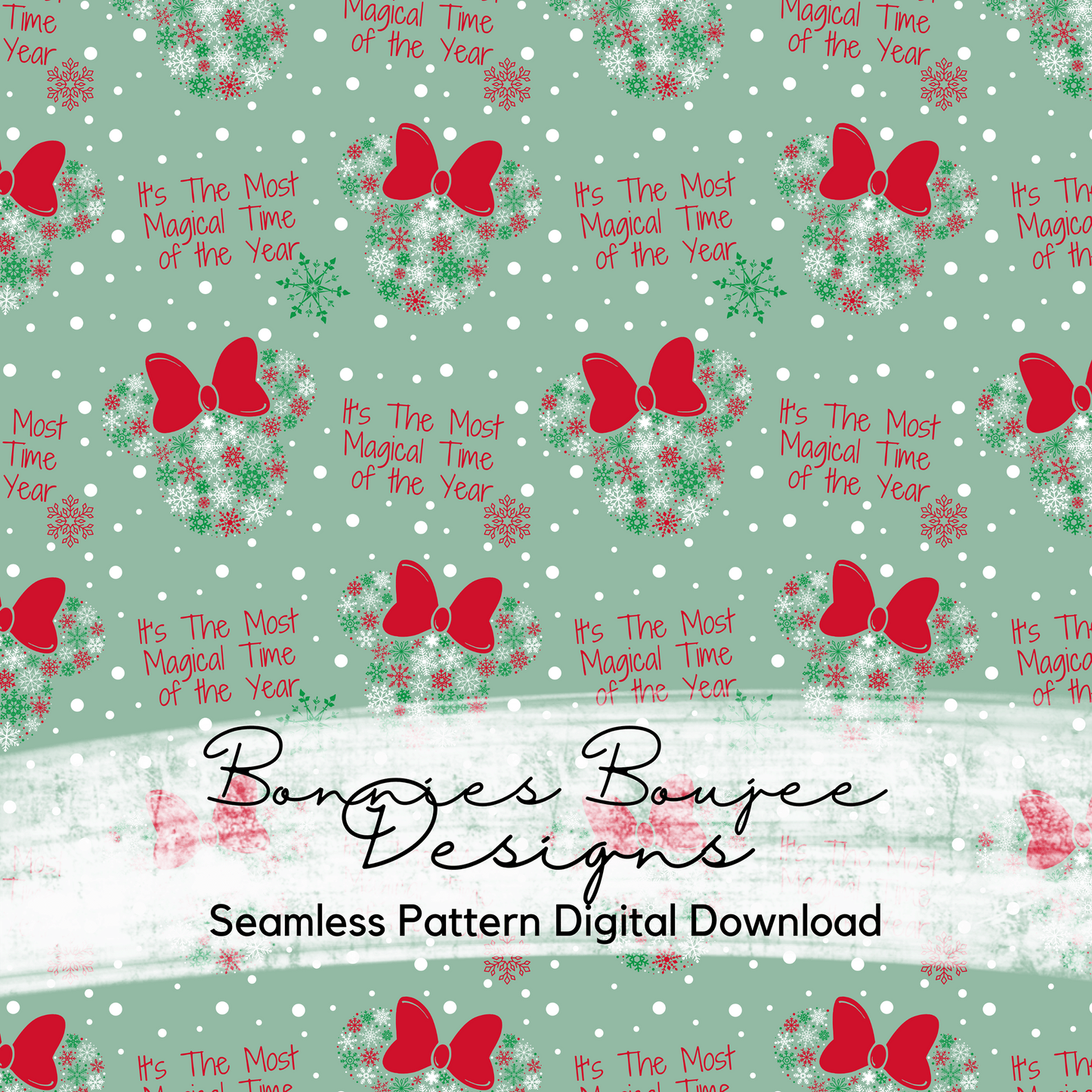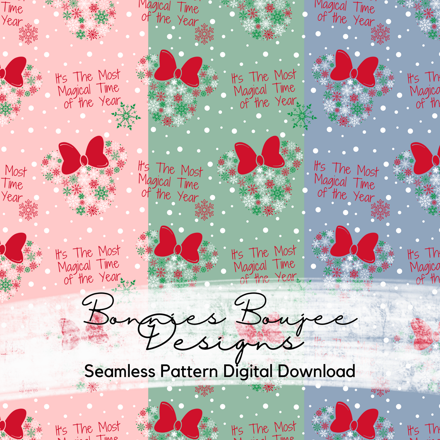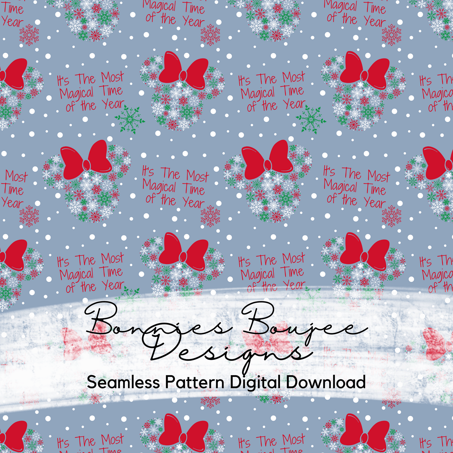 Snowflake Mouse Ears with Bows Winter Seamless File with Three Colorways