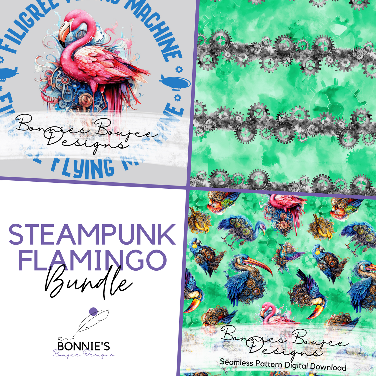 Steampunk Tropical Flamingo Watercolor Bundle Purchase