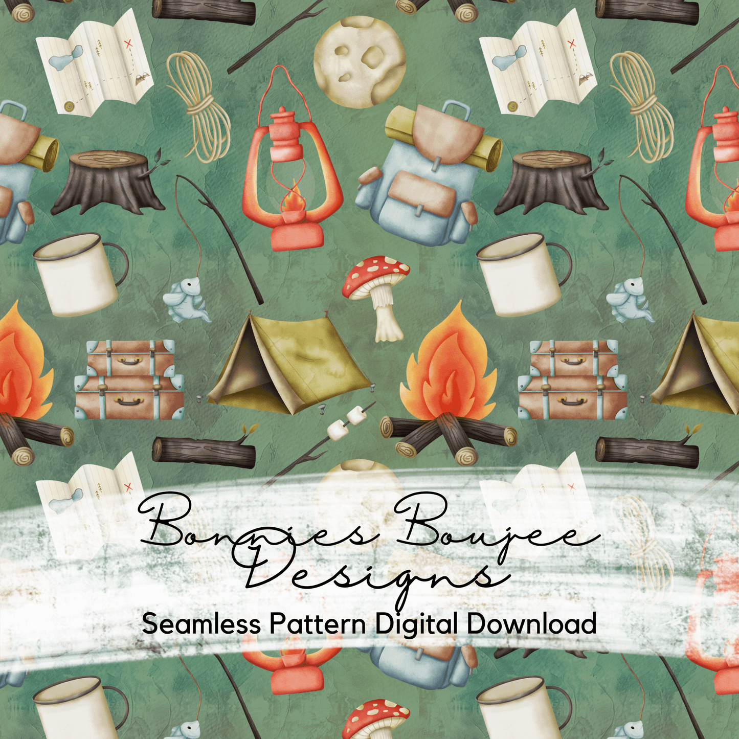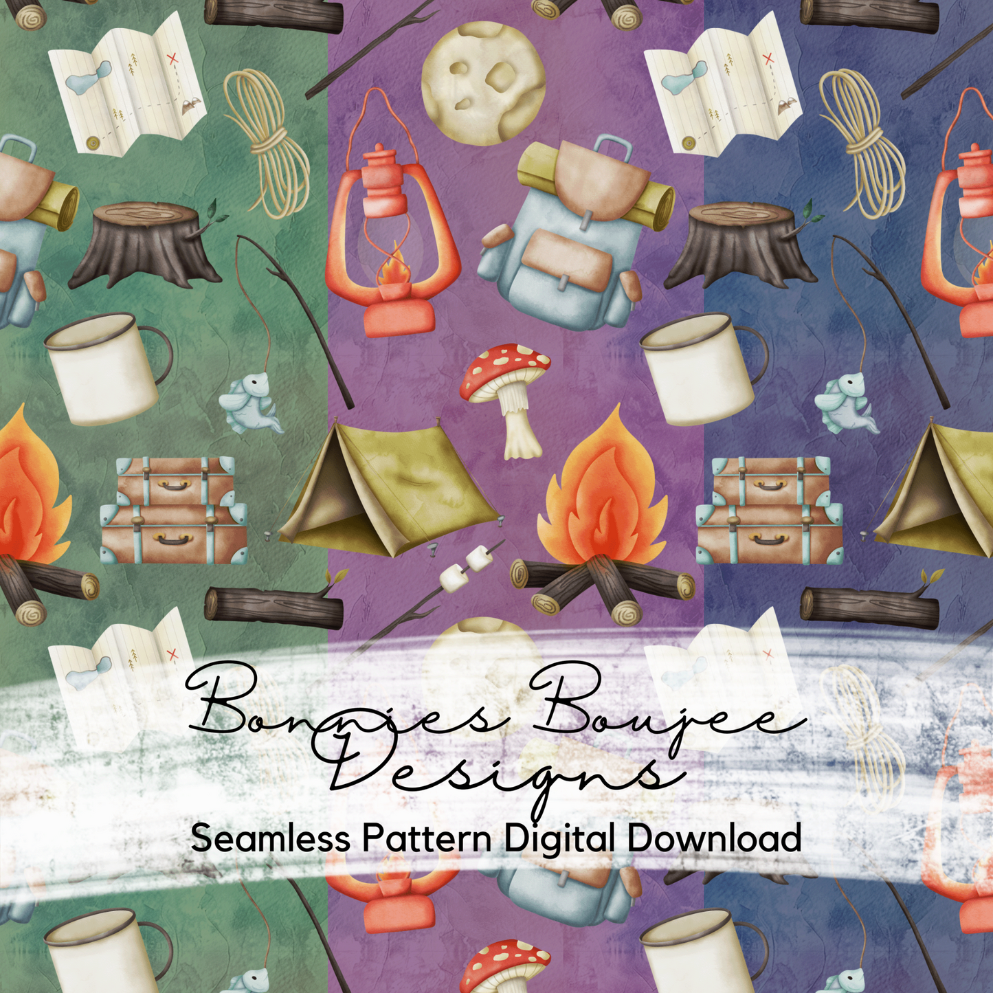 Watercolor Camping Gear Seamless files - Three colorways