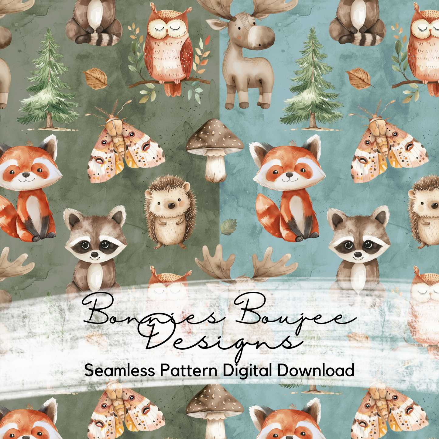Watercolor Forest Animals with Hedgehog Seamless files - Two Colorway